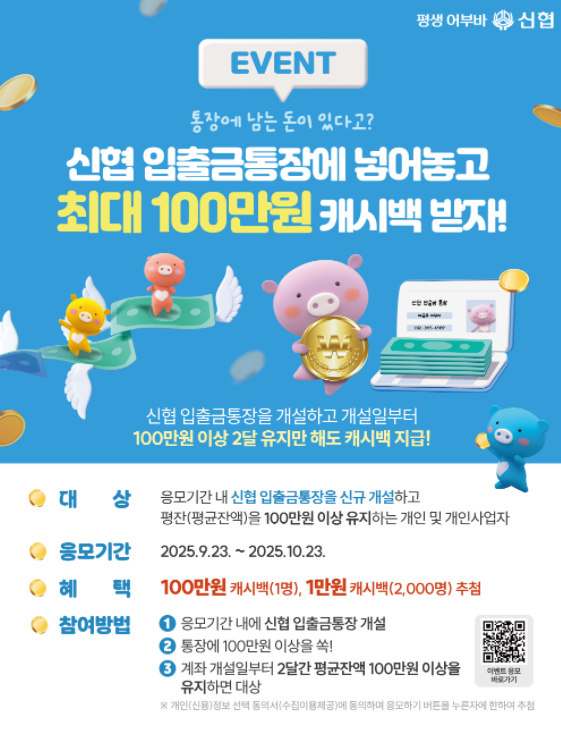 오늘은 신협중앙회에서 진행하는 입출금통장 이벤트 소식을 들고 찾아왔습니다~!!